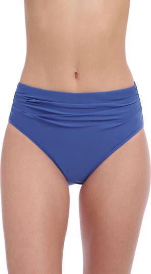Elevate your swimwear collection with the Profile by Gottex Solo Mid-Rise Shirred Bottom, a chic and versatile piece that combines comfort and style. This solid blue bottom features a mid-rise fit with a flattering shirred waistband.