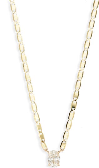 A single oval diamond sparkles from a delicate chain of light-capturing flat links in this 14-karat gold necklace.