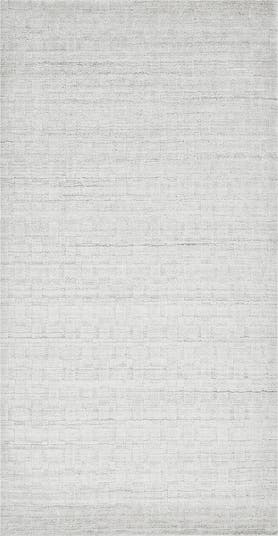 This plush handloomed wool-blend rug is woven with a textured basket-weave pattern in creamy alabaster flecked with subtle rows of black and grey.