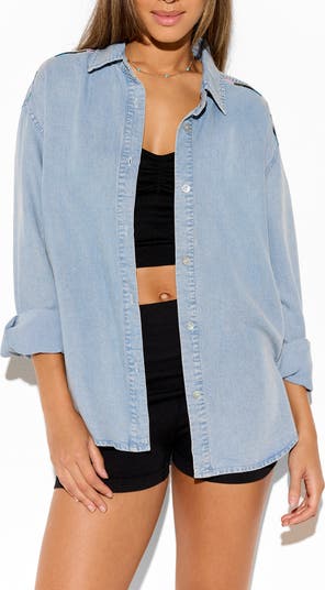 Take on the day in this chambray shirt made with a layer-friendly silhouette that buttons at the front.