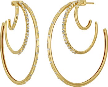 Part of our online trunk show, this style is available for a limited time from November 10 through December 23. Handcrafted from gleaming 18-karat gold, these sculptural hoop earrings are interspersed with scores of glittering round diamonds, catching the light as they shimmer from your lobes.
