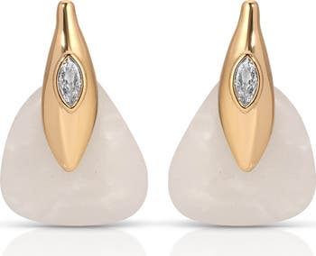 Marquise-cut cubic zirconia highlight the fluid lines of these dramatic cabochon drop earrings designed to evoke the beauty of the desert.
