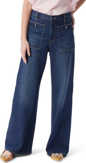 The brand's signature sophistication shines though the suiting-inspired seaming and voluminous wide legs of these high-waisted jeans cut from low-stretch denim.
