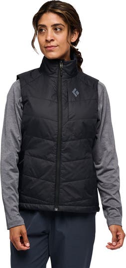 The Black Diamond Solution Vestbattles the cold, wet, and windy conditions of the mountain for us. The treated and tightly woven material stops gusts in their tracks and sheds light precipitation, while the lofty fill holds our body heat close. Equipped with a tall collar and cinchable hem, this vest promises to not let our warmth escape.
