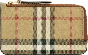 Burberry's heritage check smartens this coated-canvas card case that's detailed with Italian-tanned calfskin and finished with hand-painted edges.