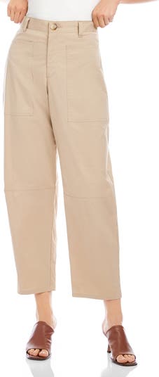 Patch pockets accent the front and back of these crisp stretch-poplin pants cut in a curved barrel silhouette.
