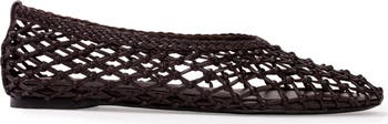 Almond shaped toe ballerina with woven leather detail. Made with smooth buffed leather.