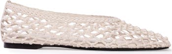 - Almond shaped toe ballerina with woven leather detail.