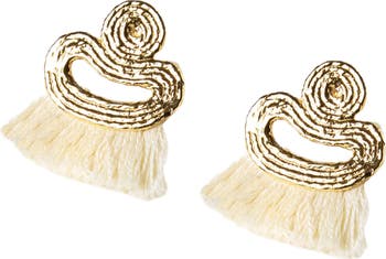- Textural, geometric shapes combined with accent tassels in soft silk, the Sonia Tassels are a playful pair of 14k gold plated earrings and are available with a créme silk tassel.