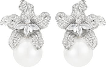 Our Sonnet Pearl Drop Earrings feature a crystal-encrusted floral design and a luminous oversized pearl drop. Bold, romantic, and made to make a statement.