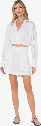 The Sonnet Short is a high-waisted tailored short cut from crisp, breathable linen. Its standout feature is the two front patch pockets crafted from a wide open-weave crochet panel, adding texture and dimension to the otherwise clean silhouette. The wide waistband creates a flattering fit and enhances its polished structure.