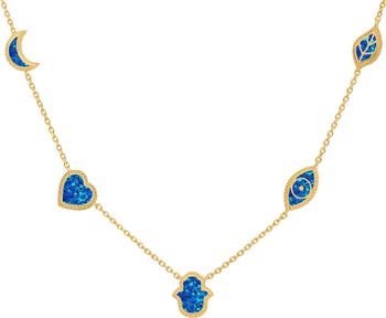 Soothing Aura Lab Blue Opal Multi-Symbol Necklace