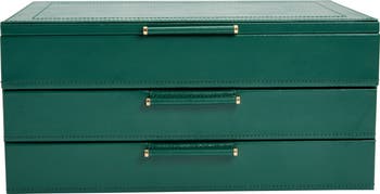 Classic meets contemporary with the Sophia collection. The Sophia Jewellery Box with Drawers is perfect for keeping the most varied of collections neatly organized in smooth, sustainable leather. Available in sweet neutrals and rich colours inspired by the natural world, Sophia pops on your dresser or in your travel bag. And since each handmade jewellery box is treated with our patented LusterLoc™ anti-tarnish lining, your collection will look its best at all times.