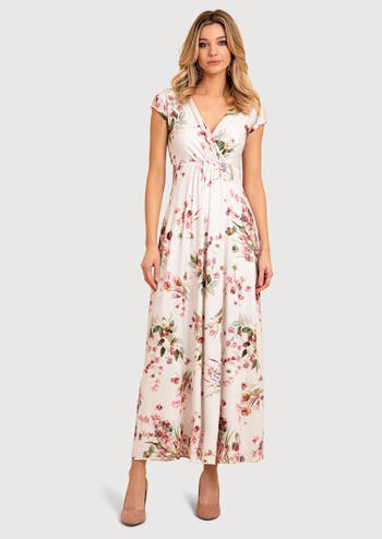 Sophia Maxi Dress: Flaunt style with our floral design. Soft jersey fabric drapes beautifully, suitable for all occasions. Flattering fit highlights the best. Skirt length from under bust to hem: Approx 103cm.