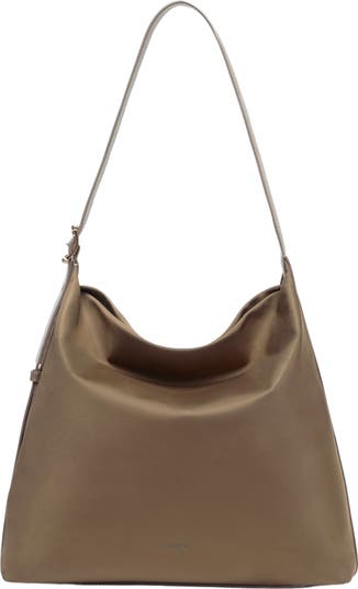 A slouchy topline and voluminous profile distinguish a durable nylon bag featuring multiple pockets and an adjustable shoulder strap for on-the-go convenience.