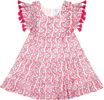 The Sophie Girls Tassel Dress brings a playful charm with its scoop neckline, whimsical tassel trim on the sleeves, and a tiered, twirly skirt perfect for twirling all day long. Made from 100% soft cotton and fully lined for comfort, this dress fastens easily with a single button at the back, making it as practical as it is delightful  100% cotton.