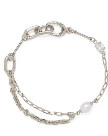 A distinct collection of chains and a lustrous freshwater pearl make this necklace the perfect way to add contemporary glamour to your look.