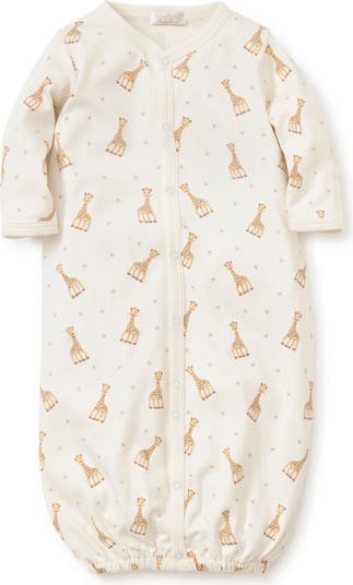 A sweet giraffe print enhances the appeal of a pima-cotton gown that easily converts to a play-ready romper with snaps between the legs. Fold-over cuffs help prevent accidental scratches.