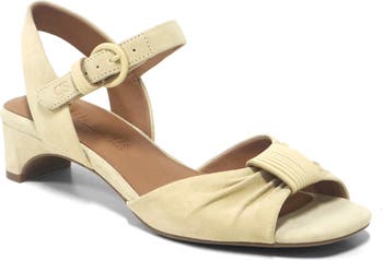 A knotted strap and sculptural demi heel bring stunning dimension to a leather sandal set on a cushioned footbed and secured with an adjustable strap.