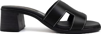 A versatile slide sandal with open sides and a modern block heel that complements any warm-weather outfit.