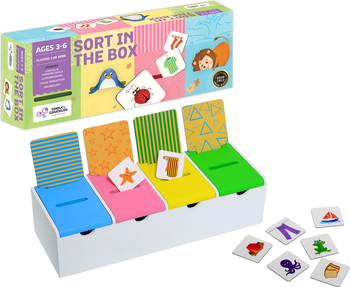 Teach organization and identification skills with this fun sorting activity game. Includes 60 object tiles to sort into four compartments.