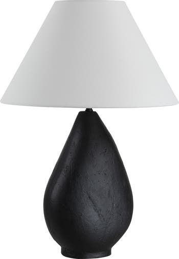 This dimmable table lamp features a relaxed form, a matte-black textured finish and a tapered shade to create the perfect ambiance in your space.
