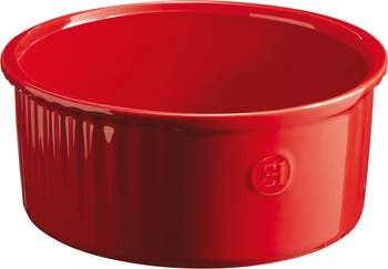 Prepare and serve dramatic souffles in fine style with the Emile Henry Souffle Dish. Wonderfully versatile, this beautifully crafted piece goes effortlessly between the freezer, oven, microwave, and table. Easy to clean. Dishwasher safe. 2.3 quart capacity.