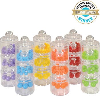 18 months & up. Children will delight in all the fun and engaging learning opportunities available with the Sound and Sort Stackers. Multiple senses are engaged while children listen, look, sort, and stack these 18 captivating pieces. Encourage color recognition and fine motor development. A set of activity card(s) is included listing all of the benefits and many hands-on activities.