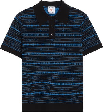 Step into a retro-eclectic rhythm with this trim wool polo, where jacquard-knit stripes and logos dance through the sound waves of Chicago rave culture—Charaf Tajer's muse for spring '26.