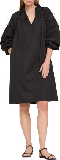 Intricate soutache insets highlight the blouson raglan sleeves of this relaxed-fit dress that draws on Scandinavian minimalism with its understated silhouette. It's crafted from organic-cotton poplin, giving it a crisp, lightly structured feel.