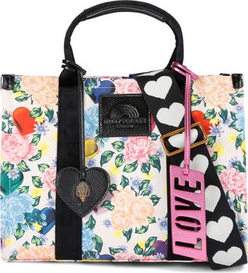 A vibrant floral print and vivid metallic accents bring bold pops of color to this sized-down canvas tote detailed with signature eagle-head hardware. An optional webbing strap adjusts for shoulder or crossbody wear.