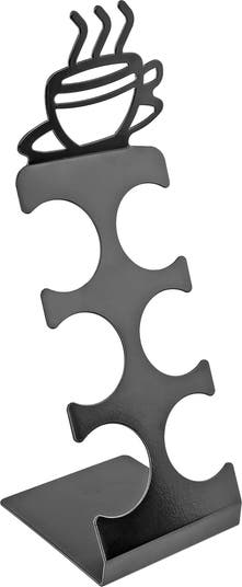 COFFEE POD STORAGE RACK: 6 SLOT - Use your coffee pods to create an attractive and interesting piece to spruce up your office. Instead of hiding away those coffee pods or making your clients fuss around with boxes and drawers, why not display six fine options for them to choose from and give them a nice, flavorful experience? This fun little rack is made of stamped steel for years of service and comes with an artful ‘steaming coffee cup’ design to top it off. It fits nicely at home, or in almost any environment including a doctors or dentist’s office, a corporate breakroom, a diner or restaurant, or even just at home. You don’t just pick through the flavors, you SEE the flavors. Also great as a display rack at church or in your store, letting customers and patrons simply decide their flavor while they wait in line, instead of picking once they get to the machine. Get a simple touch of low-key flair that brings a nice vibe to almost any space. CAPACITY: Hold up to 6 of your favorite coffee (K-Cup) pods in this elegant steel black storage rack. DIMENSIONS: 3 1/2" x 3 3/4" x 10 1/4". Perfect for any kitchen! Great gift idea for Birthday, Holiday, Christmas, or even your company White Elephant party! Note: coffee pods not included. Stand only.