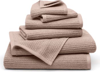 Create a spa-like oasis in your home with this plush bath towel set made from long-staple organic cotton that's soft, lightweight and absorbent. The towels feature luxuriously textured channels that dry off quickly and add visual appeal. Each towel features a woven loop, so you can easily hang them up to dry.