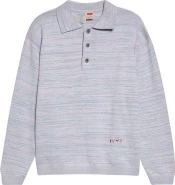 Surplus and discarded yarns get a second act in this relaxed polo-sweater finished with hazy space-dyed streaks that read like a soft-motion blur. Each one is one-of-a-kind, with color that lands in its own way.