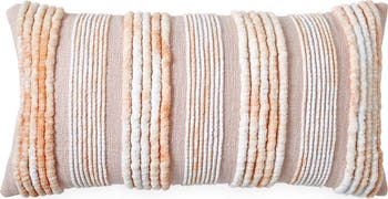 Space-dyed chenille stripes add textural intrigue to a plush accent pillow in a soft blush hue that complements any space.