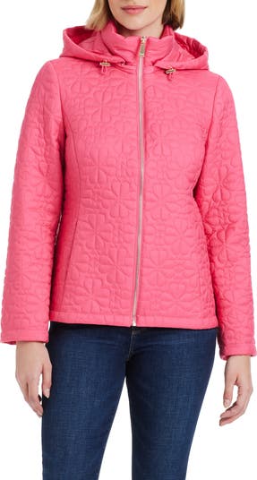 Iconic spade floral quilting adds a signature flourish to this hooded jacket fitted with a detachable hood and water-resistant finish perfect for showcasing your fashion prowess while you brave the elements.