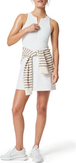 This athletic minidress boasts sweat-wicking tech and signature sculpting support to keep you moving with ease. The built-in shorts feature a hidden back opening with signature take-off ease to ensure hassle-free bathroom breaks.