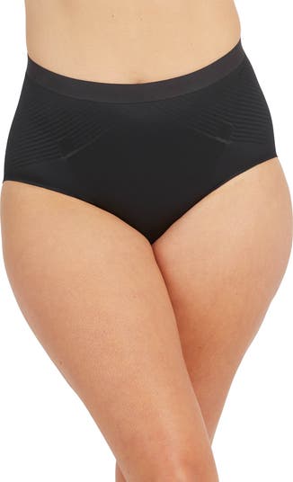 SPANX re-engineers its lightweight Thinstincts shapewear with Lycra® FitSense that offers targeted shaping and side support. These high-rise briefs are designed to wrap around your body and target your tummy and hips. Previously known as Thinstincts 2.0.