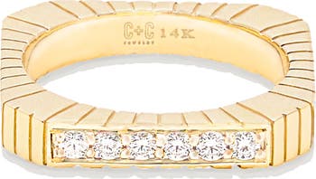 The Spark Etched Stacking Band Ring utilizes geometric motifs to create an unexpected alternative to your traditional stacking band. Embellished with signature etching throughout and adorned on the top with a striking row of pink sapphires, this 14k gold piece is a modern and elevated design.