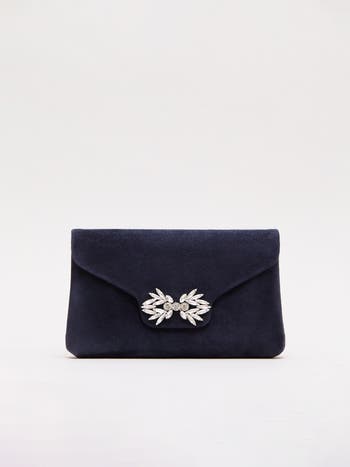Made from 100% suede, this clutch bag is adorned with a beautiful, beaded embellishment that adds a touch of sparkle to your look.