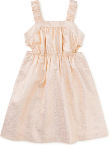 New style! We're thrilled to introduce this original design, the perfect dress for Easter, springtime celebrations, and adding a touch of magic to any moment. Crafted from gorgeous metallic sparkle fabric, it features a generously gathered skirt and on-seam side pockets, making this an extra-special piece they'll love to wear. Made from a rayon/poly/metallic blend and fully lined with an elastic waist, this dress offers both comfort and style. The mid-thigh length is ideal for warm-weather fun. For best results, machine wash cold on a delicate cycle, turn inside out, and lay flat to dry to retain its color and shape.