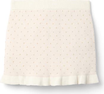 Soft and cozy with a hint of sparkle, our sweater skirt is perfect for the season. We love the metallic dot design, ribbed details and ruffle hem.