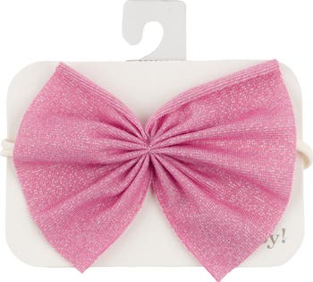 Wrap your little one in sparkle with our oh baby! Nylon Band Headband. This playful headband features a big gathered bow in a sparkly bright pink hue. Fits most newborns - toddlers. Designed in Minnesota.