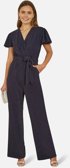 Crafted from a luxe feeling stretch fabric, this jumpsuit is perfect for party season. With a wrap over neckline and figure flattering shape that will make you feel fabulous. We love this for a winter wedding or party. The glint of sparkle throughout gives this pieces it's edge.