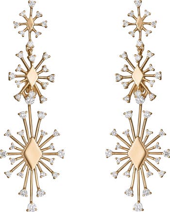 These statement earrings are handcrafted in the USA from 14-karat gold and are like little sparklers for your ears in cascading starbursts hand-set with diamonds. The modular design allows you to wear the glittering drops together, or you can remove the bottom piece to be worn as stud earrings and a pendant (when you attach the EP open close bale - sold separately).