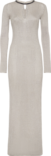 The sparkling rib knit includes a metallic thread that spreads delicate sparkling reflections along the garment’s surface.