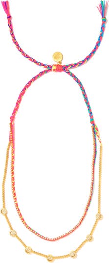Add some sparkle and personality to your neck with our Sparkling Smile Necklace. Featuring vibrant rainbow threadwork and charming pave rhinestone smiley charms, this two-row necklace is sure to make you and others smile.