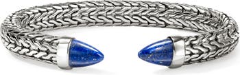 The heritage Icon chain motif is hand carved into this spear-inspired sterling silver cuff bracelet for the brand's 50th anniversary. Pointed lapis lazuli ends add a pop of color.