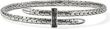 A flex-and-thread design gives sleek flexibility to this hand-carved sterling silver bracelet that glints with black sapphires.