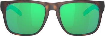 Square sunglasses with sturdy temples boast polarized lenses to reduce glare and rubber insets at the nose pads and ear tips for comfort and grip.